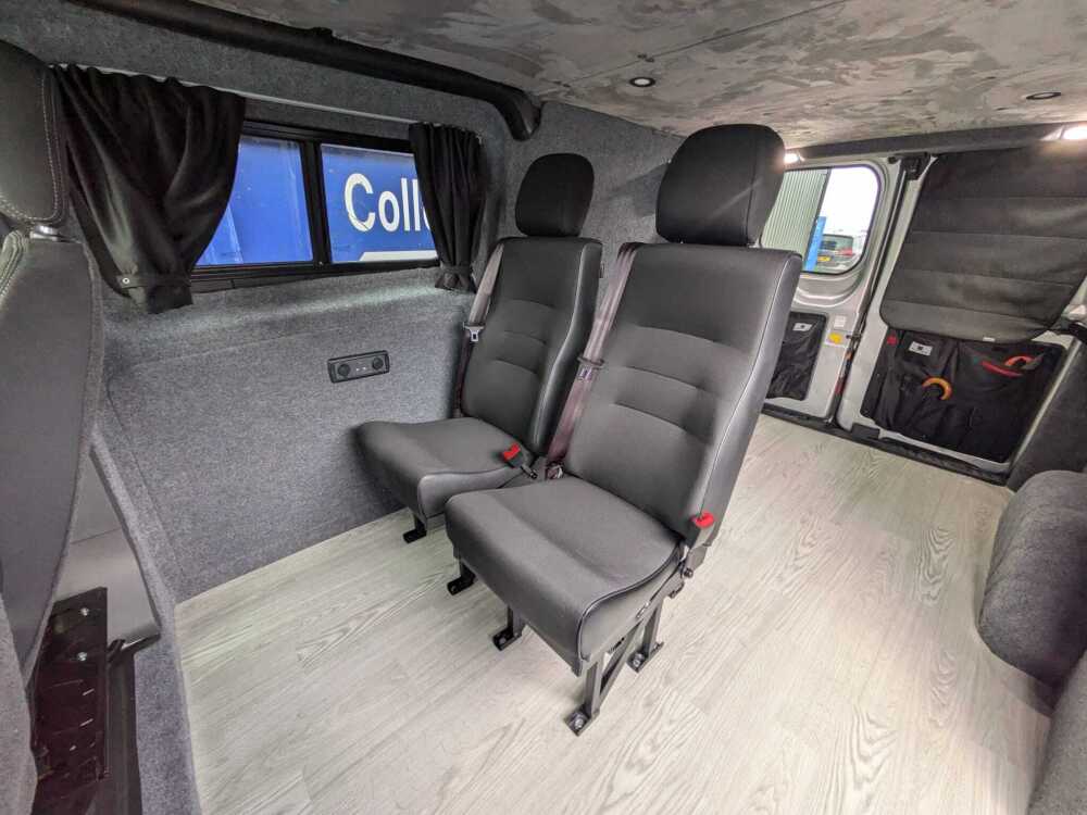 Van Seats include 3-point Seat belts and are finished in Grey or Black Cloth or Leatherette. Additional extras include: Recliner, Armrests, Manufacturers Cloth and Rails so Seats can be removed or re-positioned.