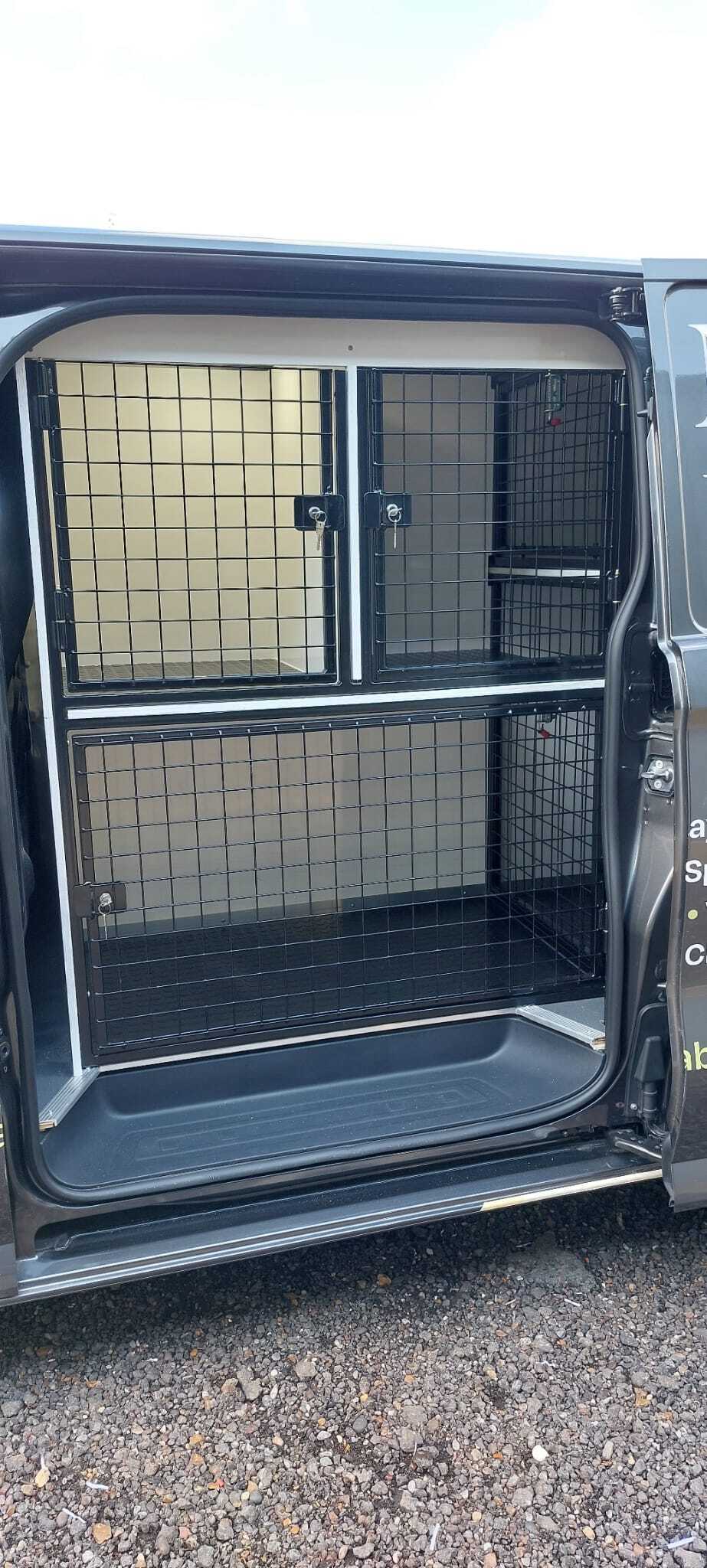 Our dog vans are equipped with lockable powder coated cages, ventilation systems and wipeable sufaces we prioritize both safety and comfort, ensuring a stress-free journey for your pets.