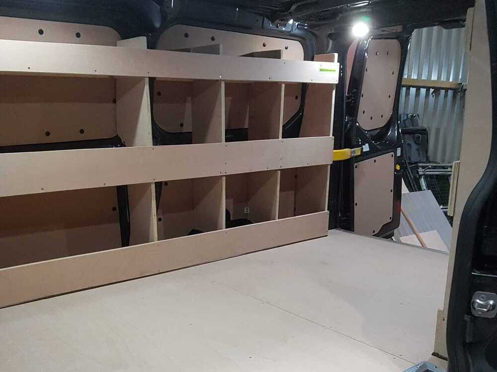 - 3 Tier Ply Shelving to Offside - Full Length of Vehicle