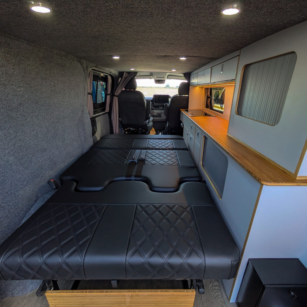 Each Van is Converted In-house with High-Quality Materials and thoughtful Design, ready for Life on the Road the moment you Drive it away.