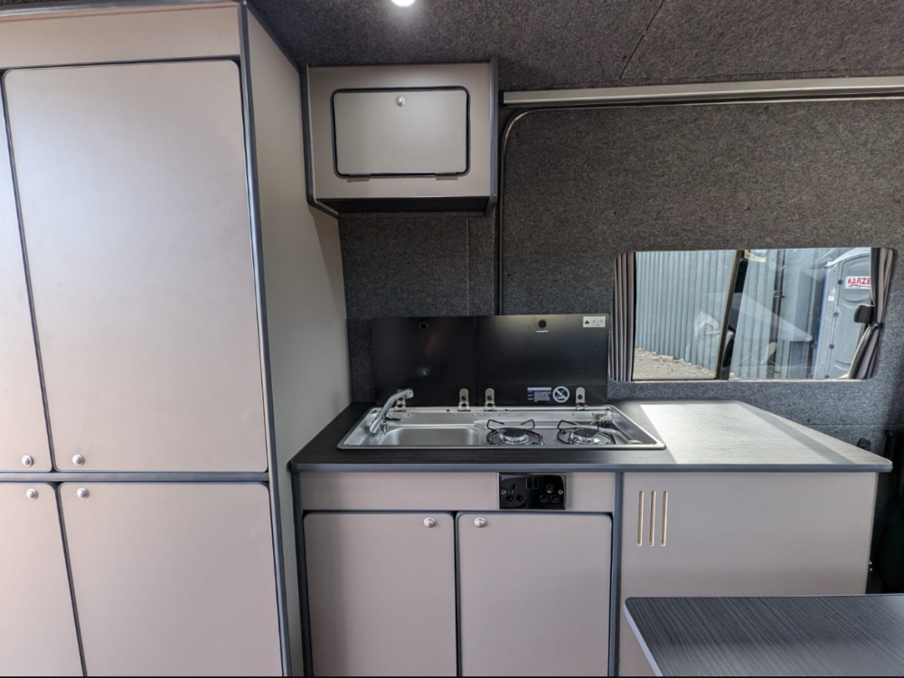 - 12v and 240v Electrics. 1x Leisure Battery, Split >Charge, Mains Hookup, 1x Double 240v Socket and Battery Charger