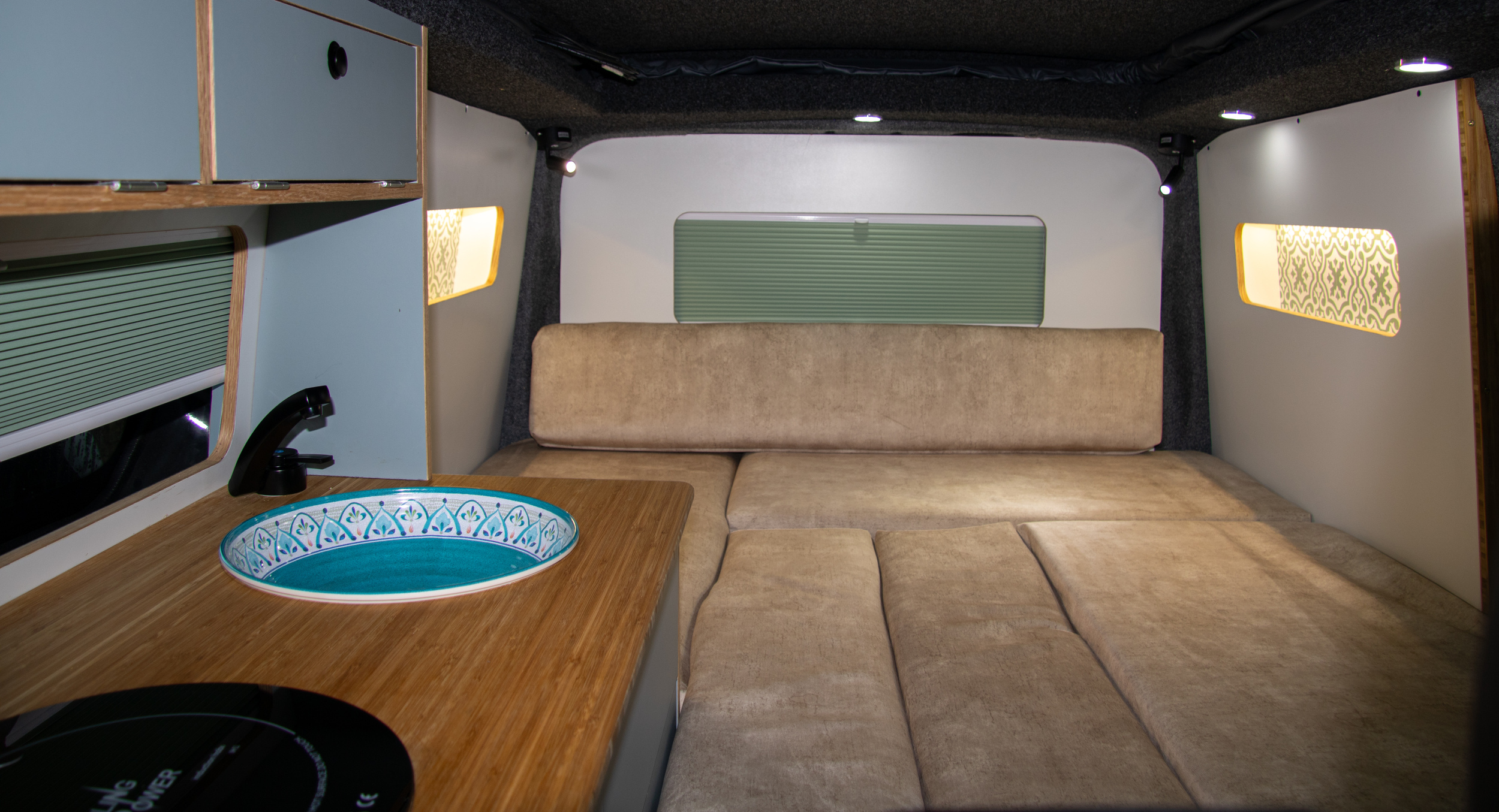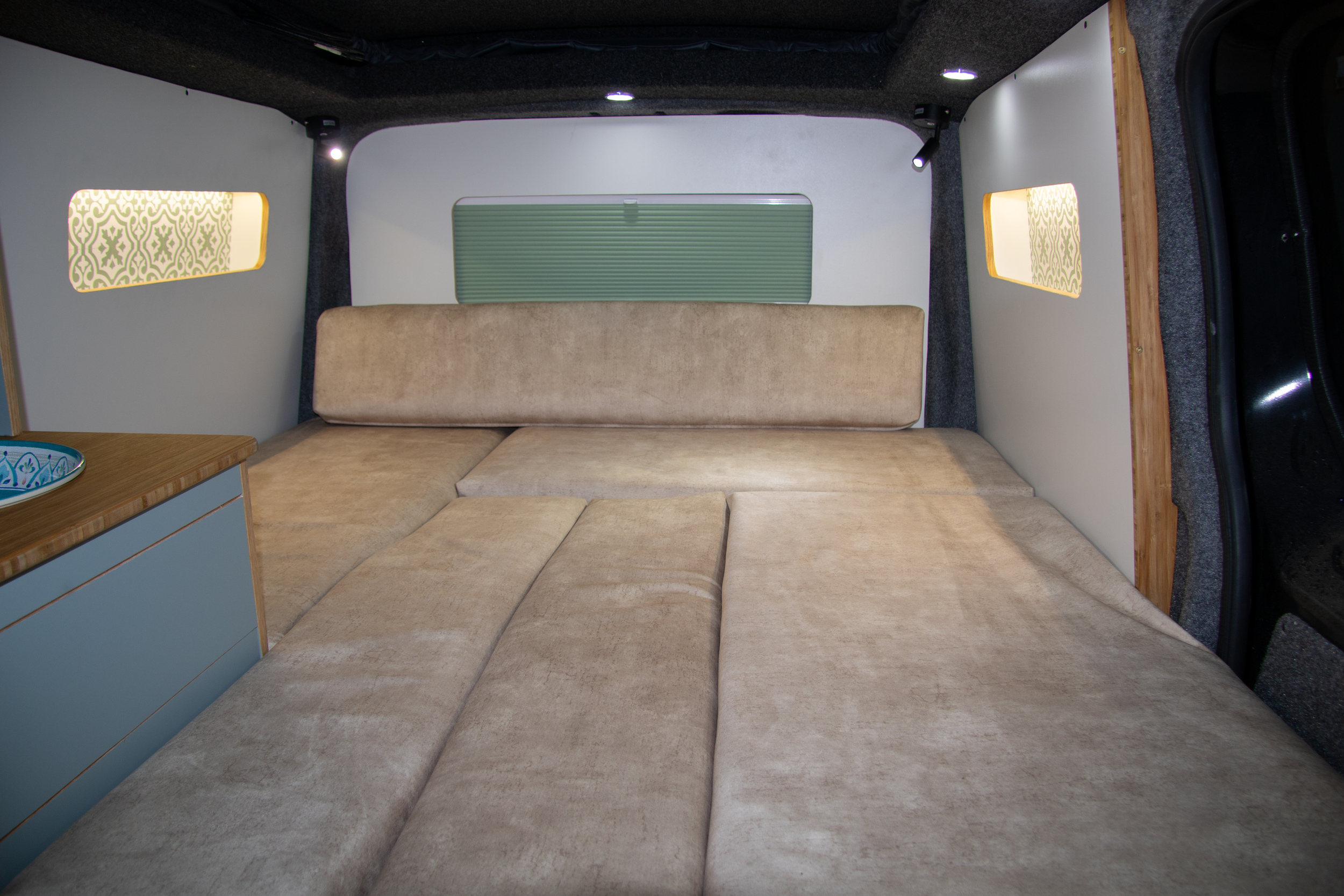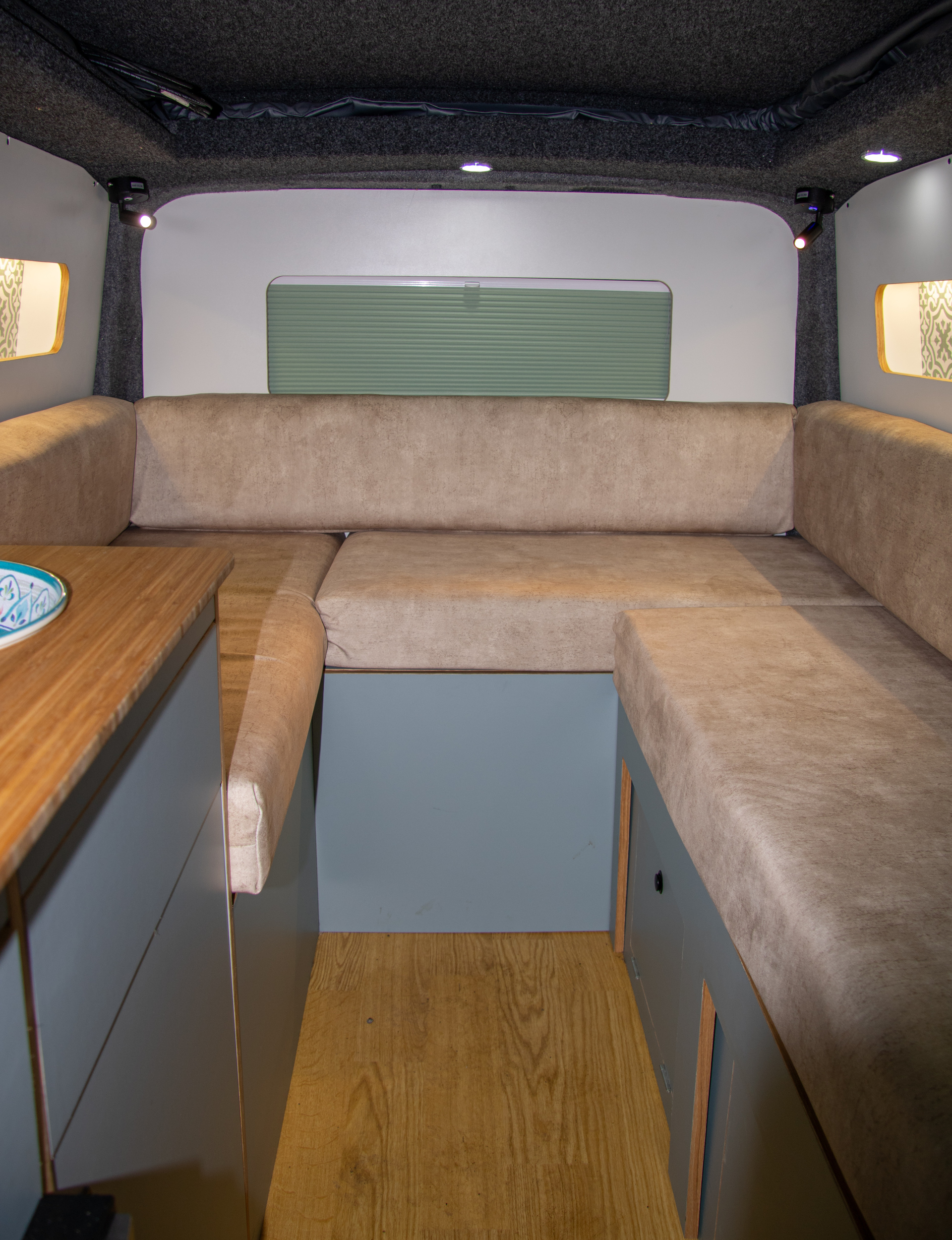 Campervans Built to Feel like a Home on Wheels: Fully Insulated, Beautifully Finished inside with Quality Flooring and Practical Design, and Equipped with Full Off‑Grid Electrics and Comfort Features. Every Van is Constructed using Premium Materials and Expert Craftsmanship, Ideal for Weekend Escapes or Full‑Blown Adventures.